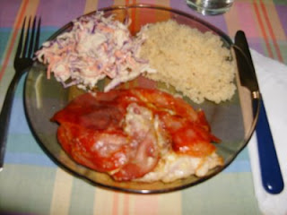 Servi com couscous e com uma salada de couve roxa, couve branca e cenoura com maionese.